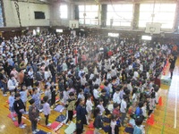 最初に全員合唱で「大切なもの」を唄いました。全員の歌声が体育館いっぱいに響き渡り、下落合小みんなの心が一つになった瞬間でした。