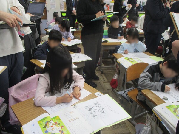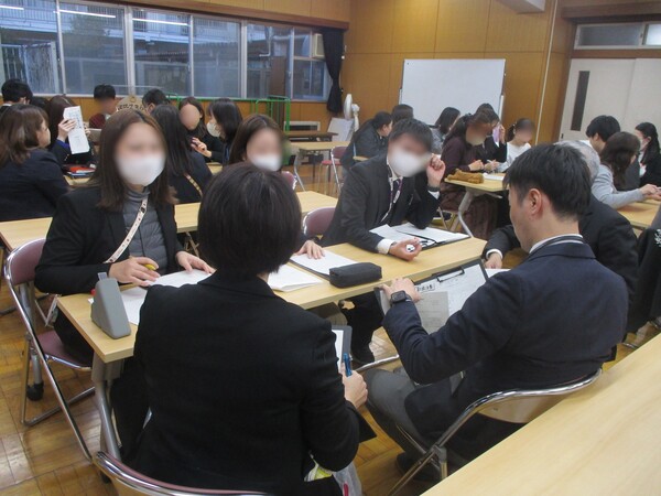 12月に実施した校内授業研究会では、1年生の国語の授業を全教職員で参観をしました。子どもたちが主体的に学習に取り組んでいる様子について参観をし、放課後には参観をして気付いたこと、更に主体性をはぐくむための手立てについて話し合いました。