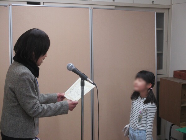 講話朝会の中で、冬休みに取り組んだ「冬の短歌キャンペーン」の表彰も行いました。今回は、学校長賞のほかに、後援会長賞、PTA会長賞、学校運営協議委員長賞も設けました。