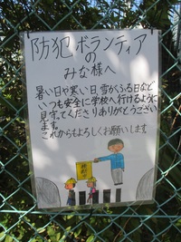 地域の方が目にする場所ということで、学校の外フェンスに掲示をしました。一人でも多くの方の目に触れますように…。