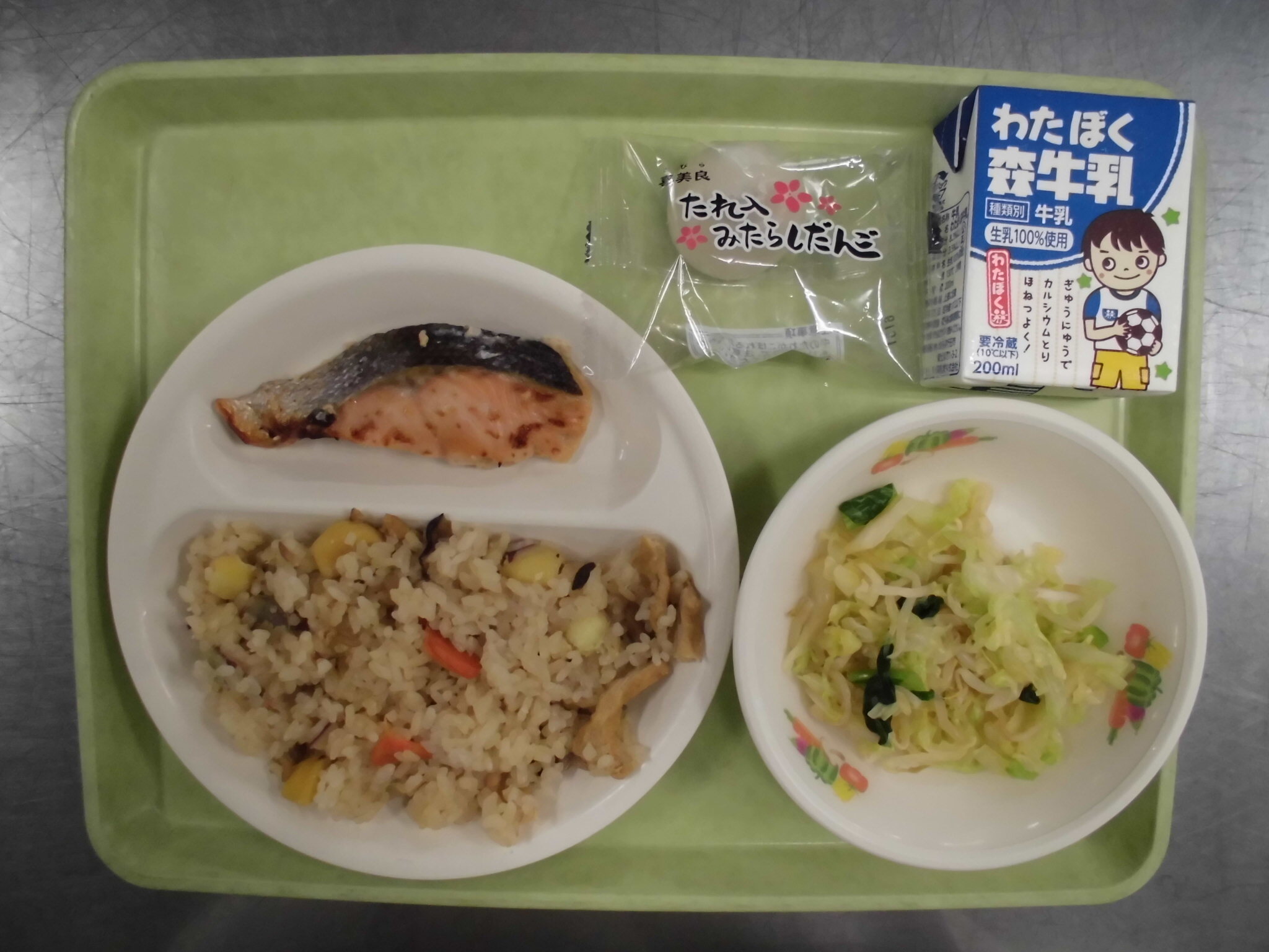 十五夜こんだて あきのかおりごはん さけのしおこうじやき おひたし みたらしだんご ぎゅうにゅう |