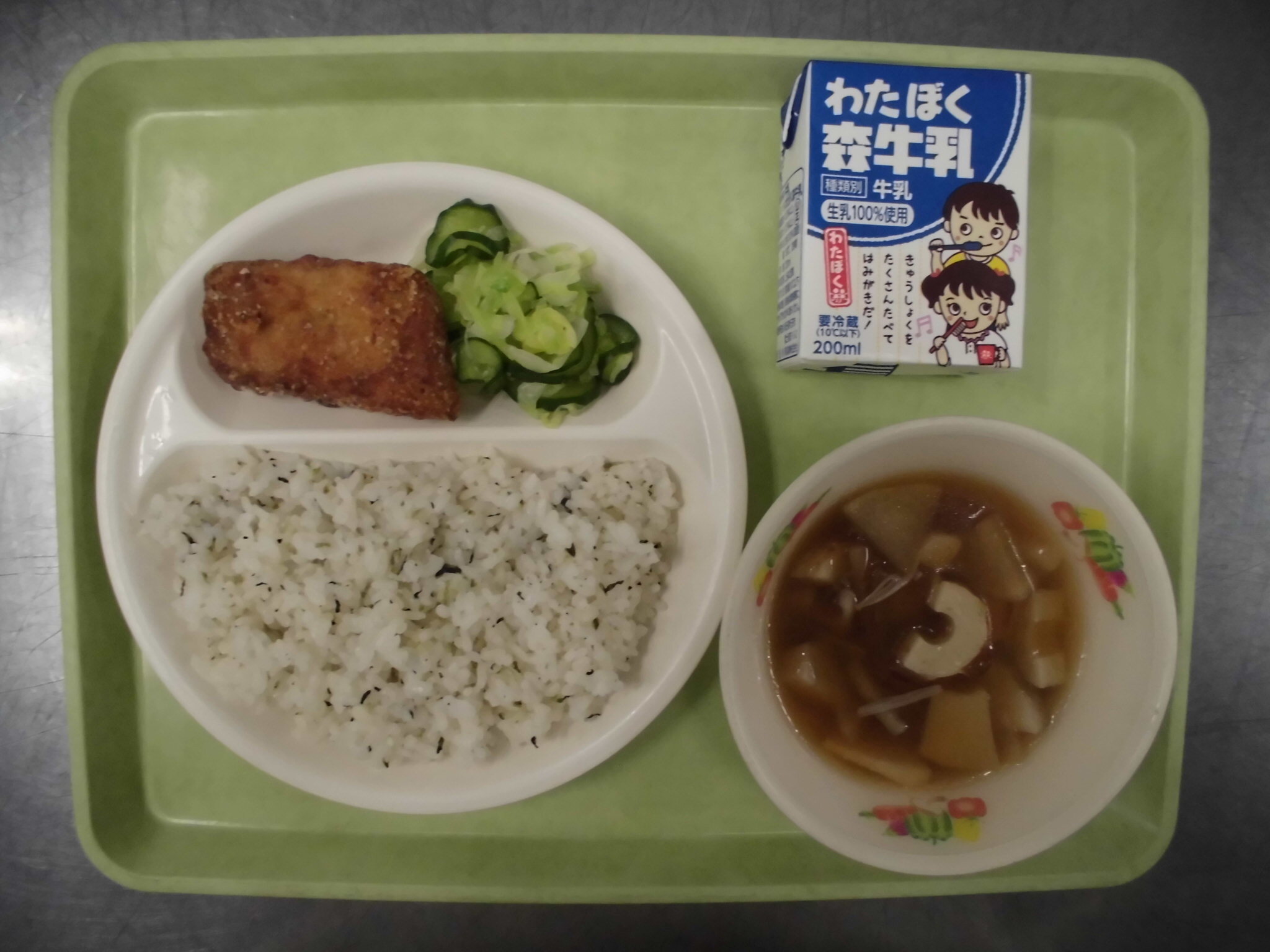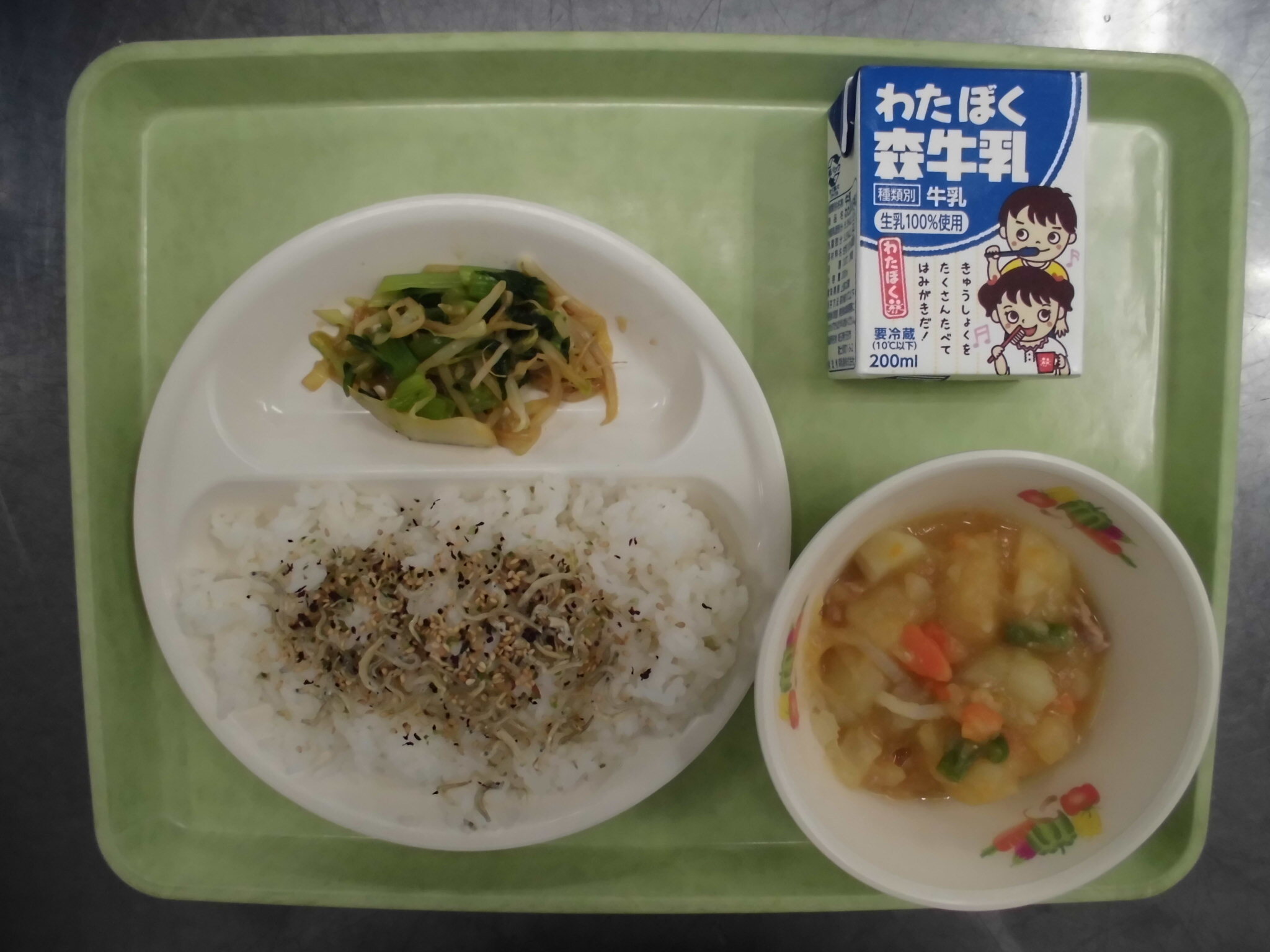 ごはん てづくりふりかけ うましおにくじゃが からしあえ ぎゅうにゅう |