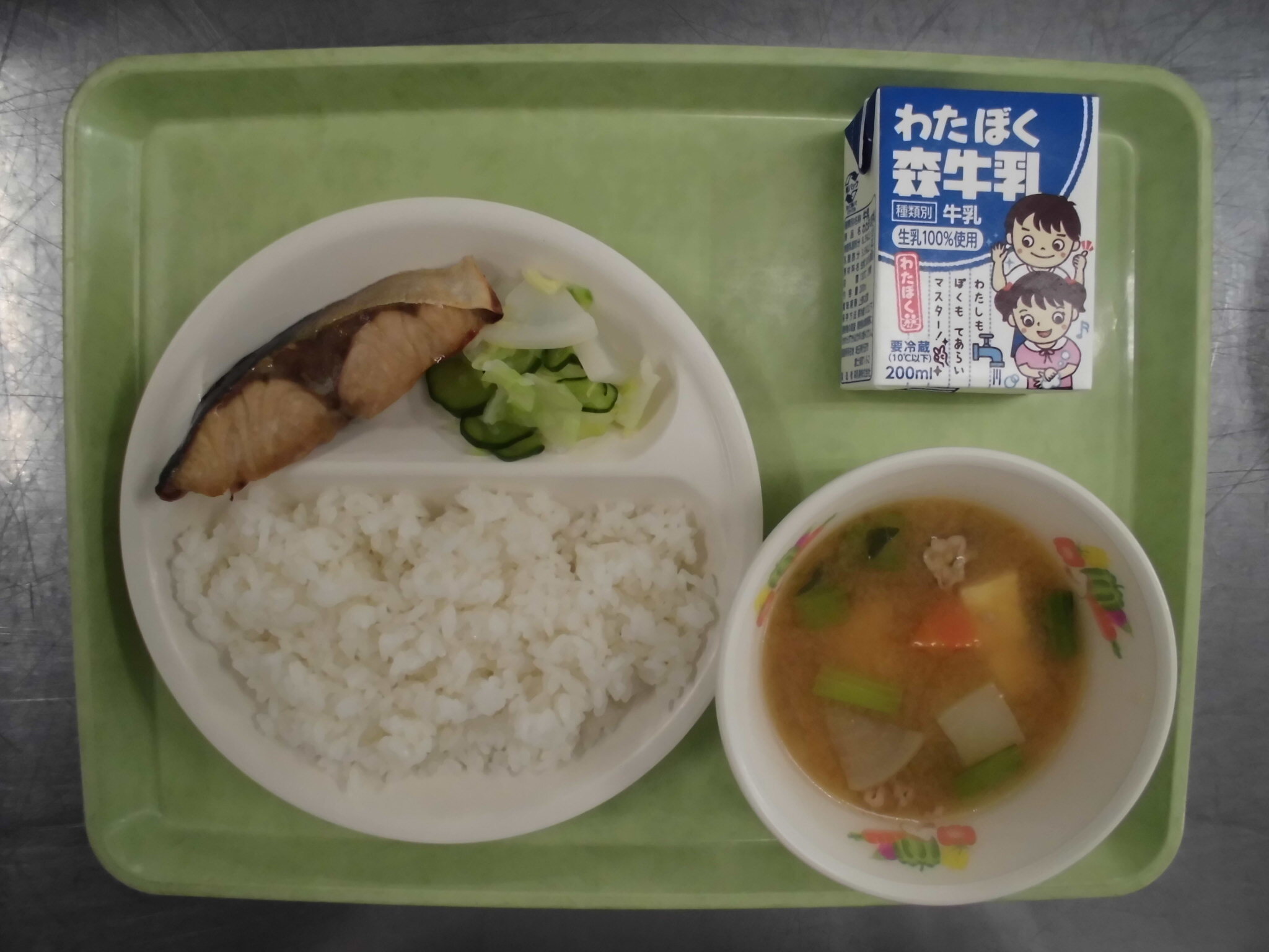 ごはん ぶりのゆうあんやき あさづけ とんじる ぎゅうにゅう |